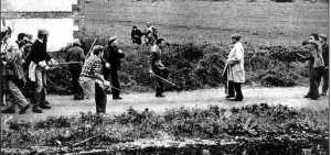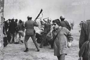 La policía lanza botes de humo dentro del recinto religioso (según el Concordato firmado por Franco con la Santa Sede, la iglesia es inviolable) los concentrados comienzan a salir ahogados por el humo. Los primeros son recibidos a porrazos y con balas de goma…para al momento, pasar a las otras balas. Las que matan. Los trabajadores Francisco Aznar (17 años) Romualdo Barroso (19 años) María Martínez(27 años), Bienvenido Pereda (30 años) y José Castillo (32 años) caen abatidos y muertos por las balas de las Fuerzas del Orden. Los heridos son 150. Landín y los agentes implicados en los actos se justifican con el argumento de que los trabajadores concentrados eran agresivos …Jamás hubo detenidos por esos crímenes ni se pidieron responsabilidades a los políticos implicados.