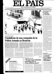 Las concentraciones se tornan revueltas intentando asaltar al Gobierno Civil y al Palacio de la Diputación Foral. La ciudad está tomada por los disturbios con gran destrozo urbano, hay 11 heridos de bala, 150 heridos de diversas causas. La protesta se extiende a Euskadi; en Donosti Joseba Barandiarán cae abatido por las balas policiales en una manifestación. Después de dos días de duelo se suspenden los San Fermines, cosa que solo ha ocurrido dos veces en su historia.