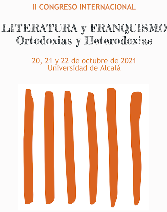 Congreso Internacional Literatura y Franquismo. Ortodoxias y Heterodoxias, Universidad de Alcalá del 20 al 22 de octubre de 2021. Al igual que en la primera edición del Congreso, aceptan propuestas de comunicaciones que estimulen el conocimiento y el debate acerca de los modos bajo los cuales la dictadura franquista influyó sobre la producción, circulación, recepción y crítica literaria. https://congresoliteraturayfranquismo.weebly.com/