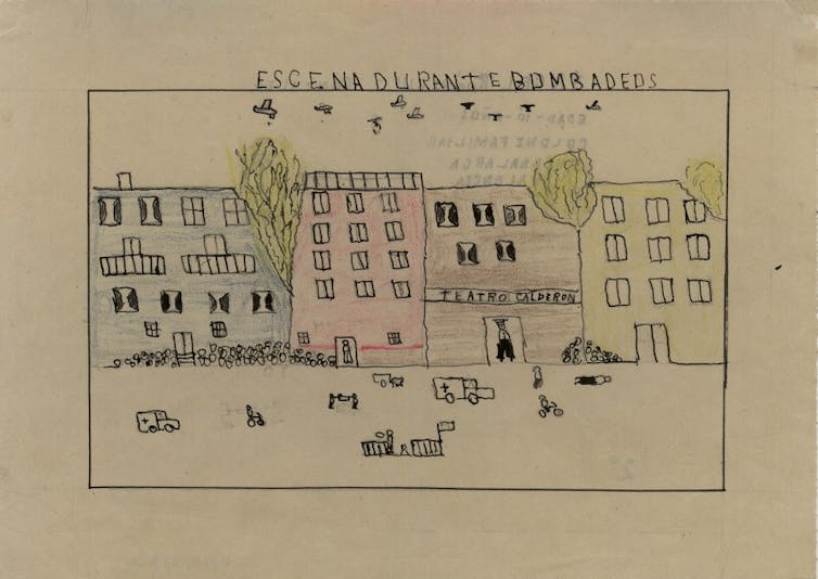 No hay actividad escolar más atractiva para la infancia que coger una hoja arrancada de su cuaderno y ponerse a dibujar. Cuando los niños de la guerra que fueron evacuados de sus hogares llegaban a las colonias, dedicaban mucho tiempo a dibujar. Lo hacían a todas horas, incentivados por sus tutores o docentes. Algunos impresionados y atemorizados por los acontecimientos experimentados dibujaban esas experiencias y sus lágrimas, como si fueran bombas de aviación, caían en el papel humedeciendo la escena.