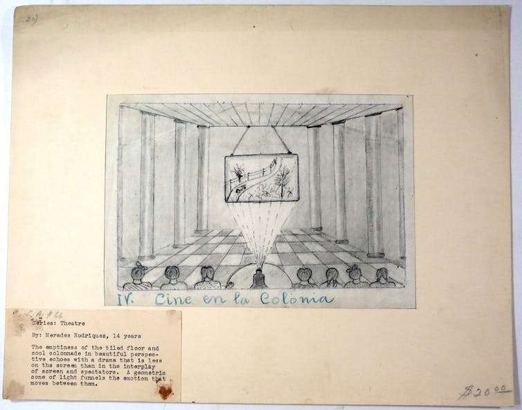 Los niños también sintieron interés por dibujar las funciones teatrales en los colegios, las salas comerciales y las colonias de acogimiento, estas últimas alejadas de la familia y del estruendo de la guerra. En unas ocasiones, disfrutaron de la velada aplaudiendo las actuaciones de sus compañeros; en otras, se convirtieron ellos mismos en protagonistas desempeñando diversos papeles a lo largo de la función.