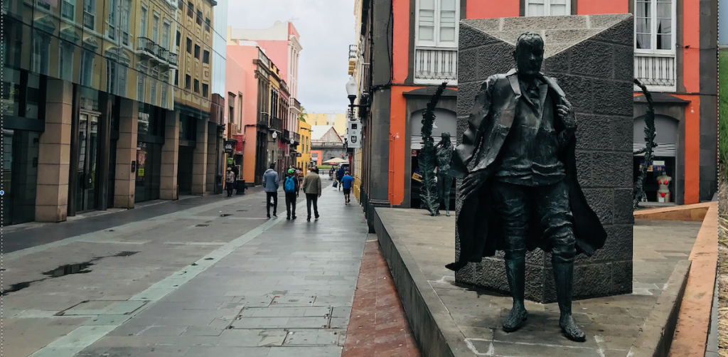 Estatua a Juan Negrín en la calle Triana de Las Palmas de Gran Canaria del escultor Juan Bordes Caballero. Negrín nació en esta calle.
